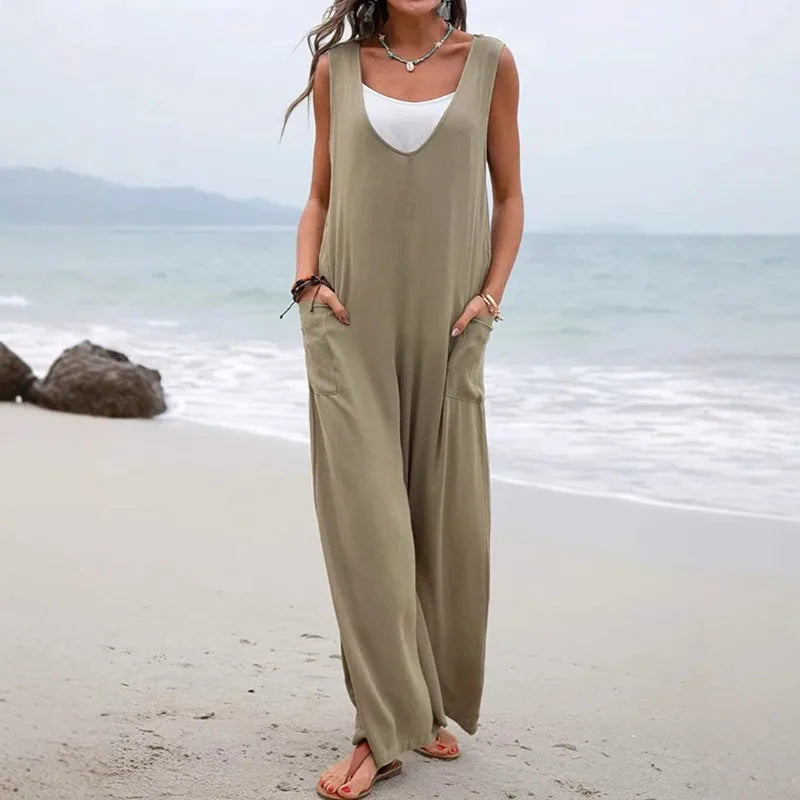 The Venna jumpsuit is designed for women who value comfort without compromising on style. The polyester and linen blend creates a light, natural look with a refined feel. The wide-leg silhouette allows freedom of movement while delivering a modern, relaxed aesthetic.